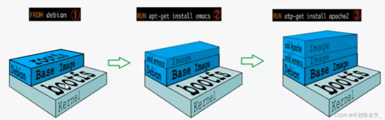 Docker中的镜像分层,支持通过扩展现有镜像,创建新的镜像。类似Java继承于一个Base基础类,自己再按需扩展。新镜像是从base镜像一层一层叠加生成的。每安装一个软件,就在现有镜像的基础上增加一层