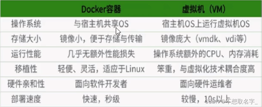 Docker实质上是在已经运行的Linux下制造了一个隔离的文件环境,因此它执行的效率几乎等同于所部署的Linux主机.因此,Docker必须部署在Linux内核的系统上。如果其他系统想部署Docker就必须安装一个虚拟Linux环境。