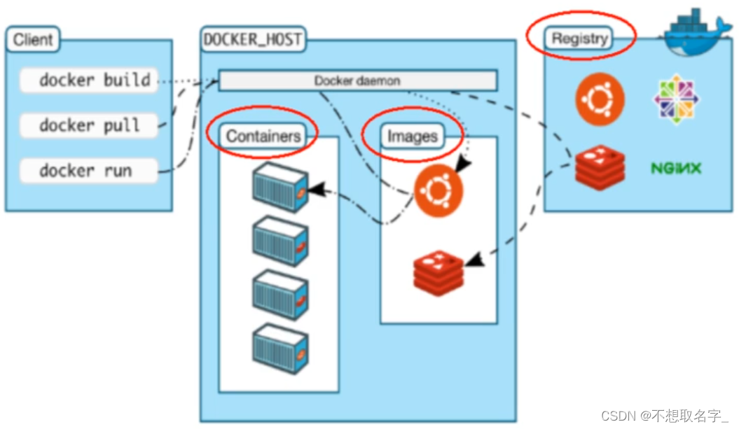 1、用户是使用Docker Client 与 Docker Daemon建立通信,并发送请求给后者。