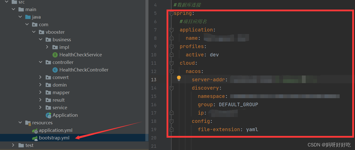检查配置文件,发现拉取nacos服务的配置写在application.yml里面了,应该写在bootstrap.yml里面。