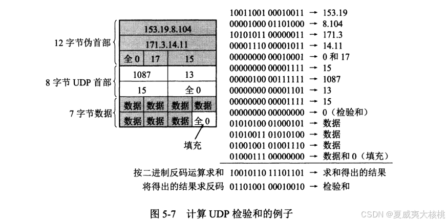 - 计算时16位对齐,1's complement 求和(并在最后取反后放进报文)
