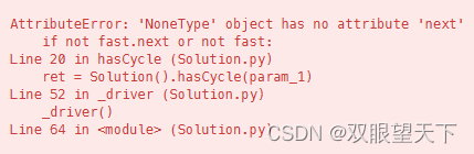 AttributeError: ‘NoneType‘ object has no attribute ‘next‘ 想了想,才发现在fast为空的情况下,则没有fast.next。所以应该先判断fast是否为空,将其放在前面。时写个条件句判断当前节点和下一节点是否为空,我一开始是写的如上,但一直报错,百思不得其解。