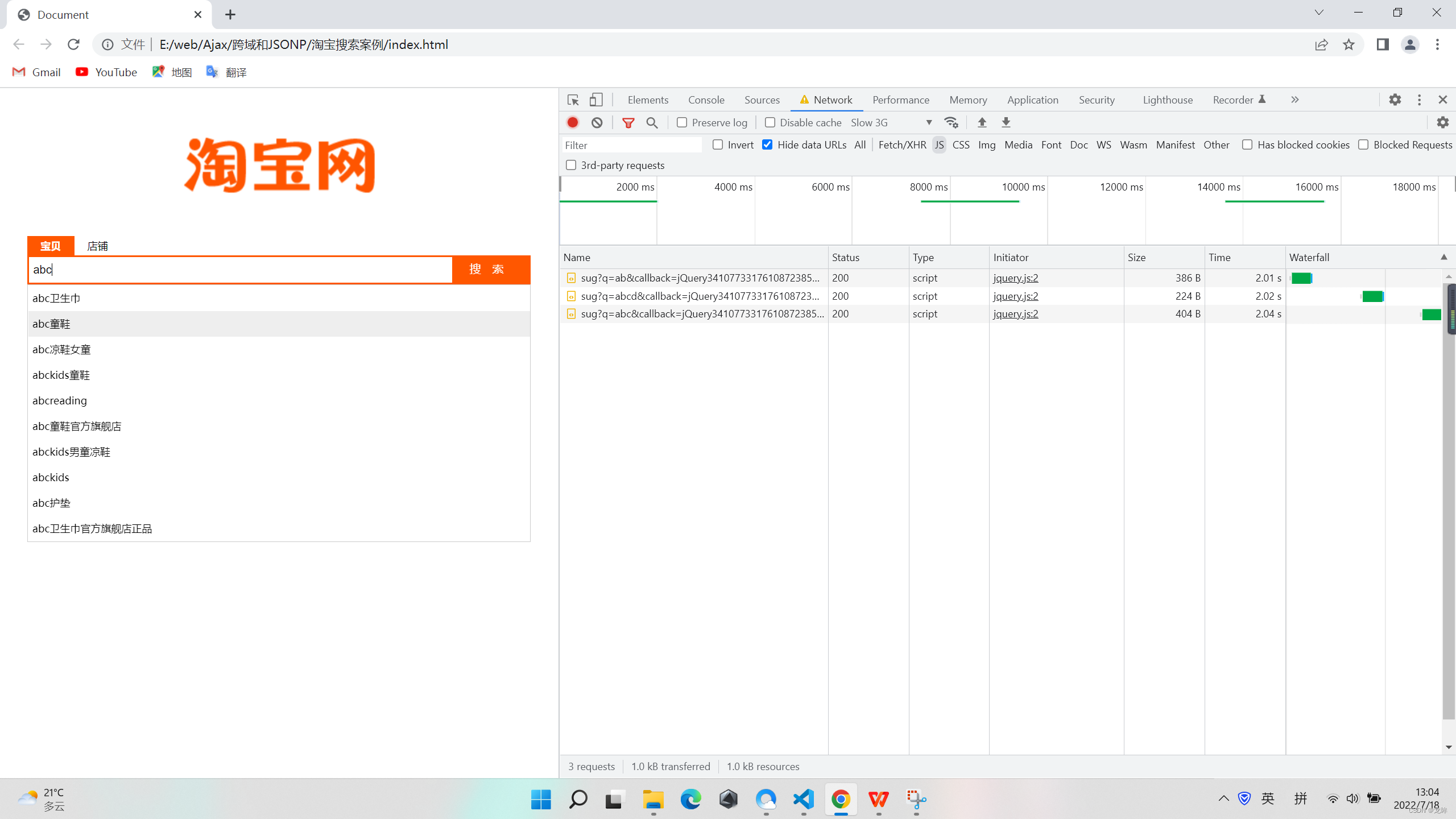 淘宝搜索案例 /获取用户输入的内容val()获取输入内容,trim()去除两端空格。//封装getSuggestlist函数,获取搜索建议列表。//指定请求的URL地址,其中q是用户输入的关键字。//如果关键词为空,则清空后隐藏搜索建议列表。//1.获取用户输入的内容,当做键k。//指定要发起的JSONP请求。//为输入框绑定keyup事件。//TODO获取搜索建议列表。//1.定义延时器的ID。//判断用户输入是否为空。//定义全局缓存对象。//定义防抖的函数。//成功的回调函数。...