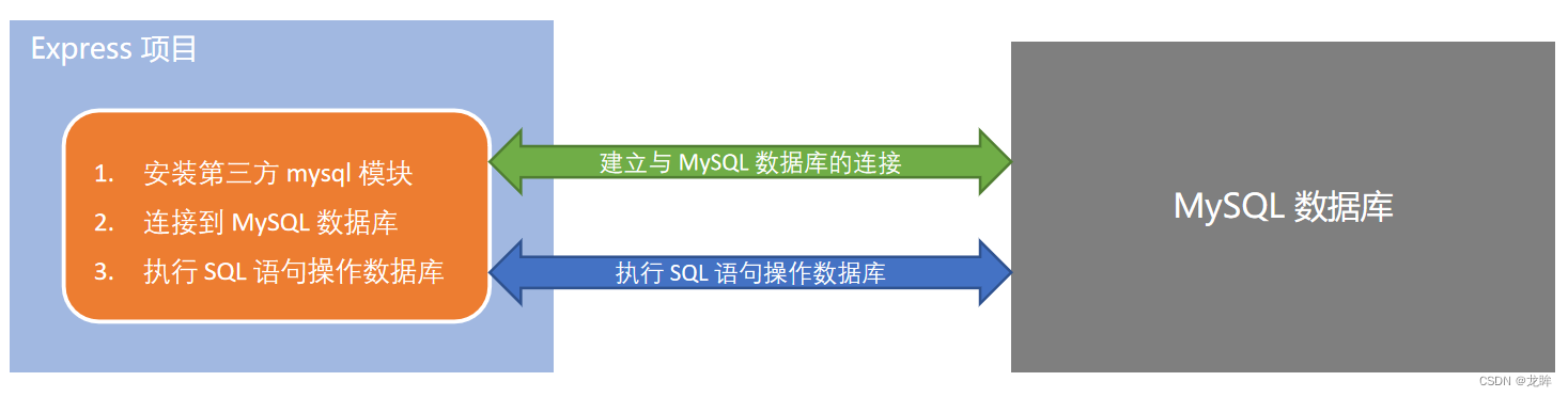 在项目中操作MySQL 1、在项目中操作数据库的步骤① 安装操作 MySQL 数据库的第三方模块(mysql)② 通过 mysql 模块连接到 MySQL 数据库③ 通过 mysql 模块执行 SQL 语句