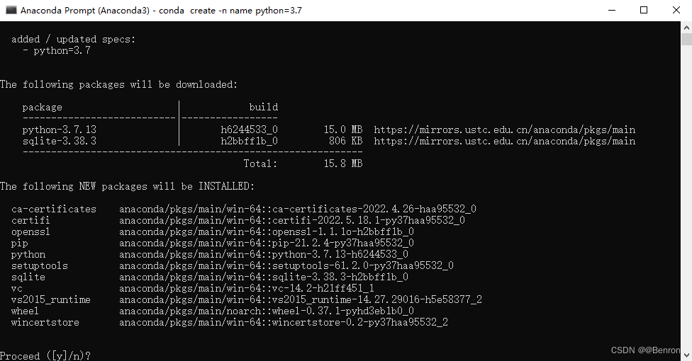 输入y,环境即可创建成功。