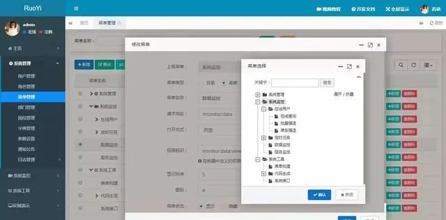 - 角色管理:对权限与菜单进行分配,可根据部门设置角色的数据权限