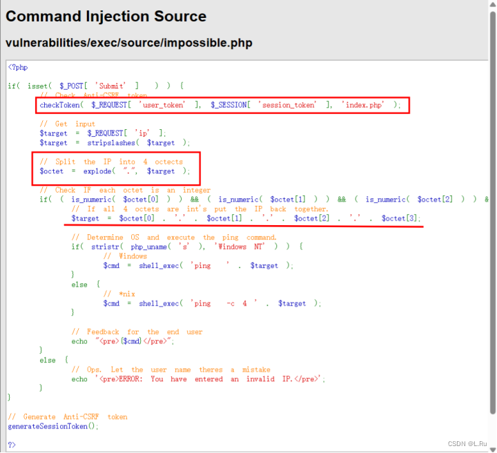 5、Impossible等级的机制以及修复、防御命令注入的方法。