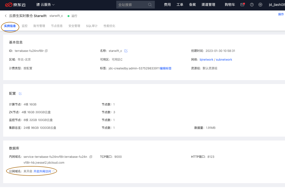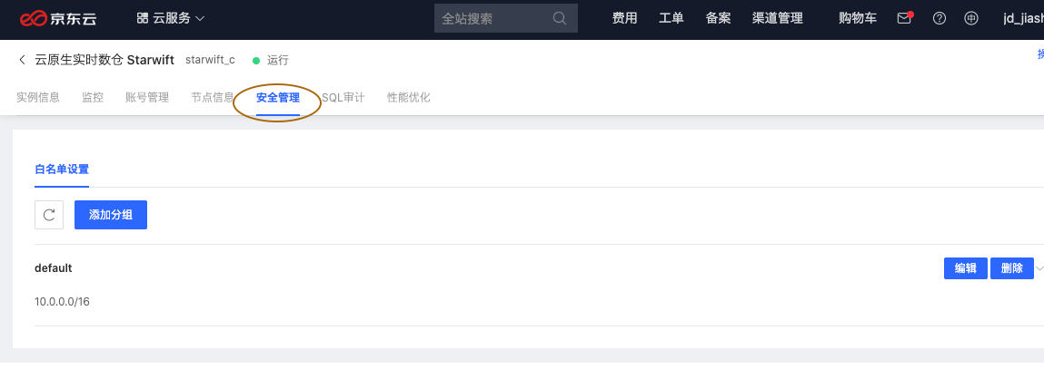 为了保证 starwift 能够被外部资源访问需要开启白名单,默认情况下新创建的实例只有该实例所在 vpc 下才能访问