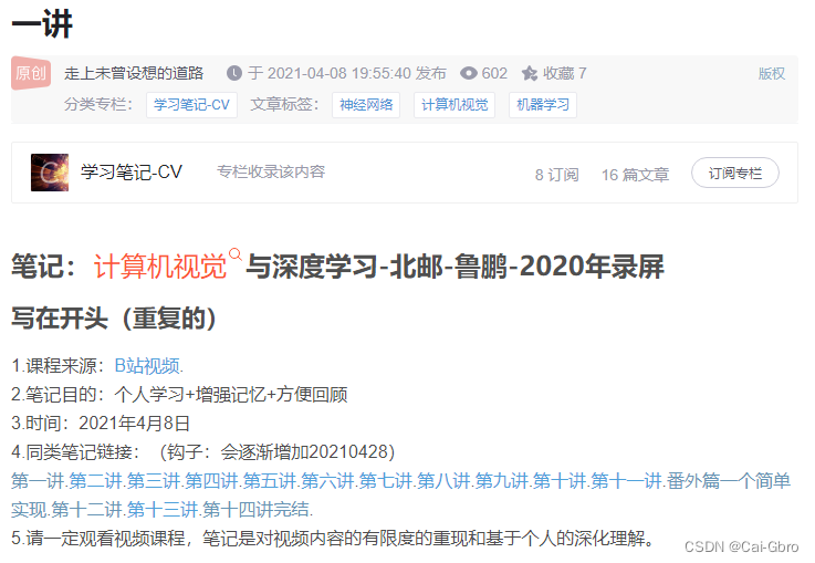 (12条消息) 学习笔记-CV_走上未曾设想的道路的博客-CSDN博客