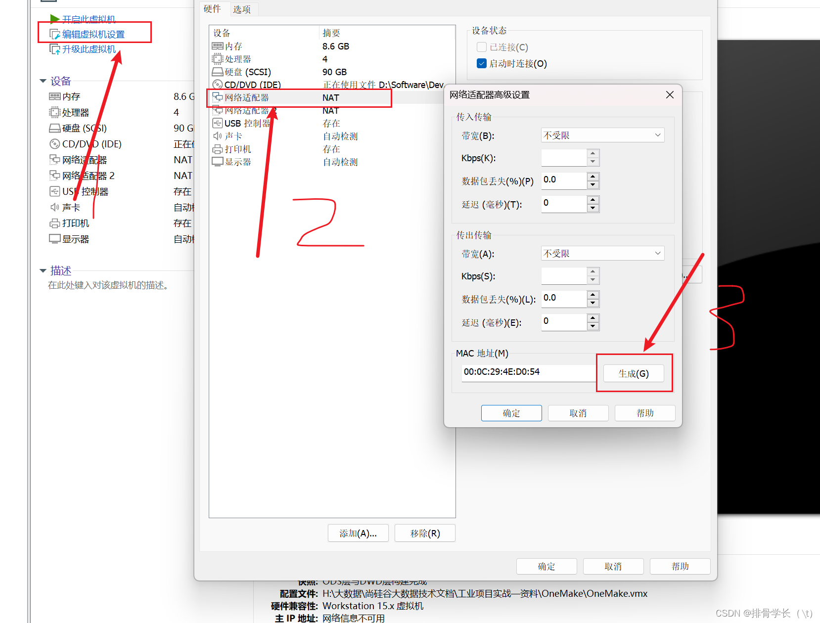vmware克隆虚拟机以后ping不通百度,ping百度未知服务名,hadoop搭建克隆后第2,3台虚拟机ping不通百度 vmware克隆虚拟机以后ping不通百度,ping百度未知服务名,hadoop搭建克隆后第2,3台虚拟机ping不通百度。场景:今天在帮班里面美女解决问题的时候遇到的。原因就是他们在搭建hadoop的时候,将第一台克隆成三台的时候发现后面的salve1和slave2ping不通www.baidu.com,报文就是未知服务。我一一排查以后还是不行,最后发现在网络配置文件中的MAC地址三台都一样,那还得了,每个设备的MAC地址应该是独一无二的,以确保网络上的数据能够正确地发送到目的地。