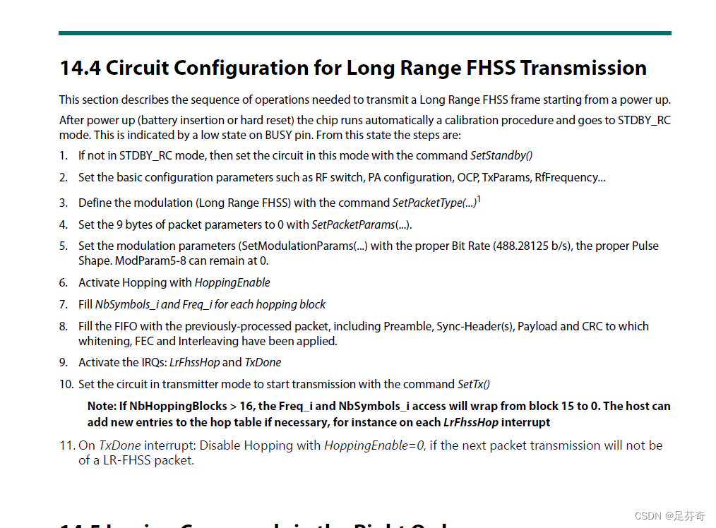 跳频表示为FHSS,翻阅手册找到如下解释