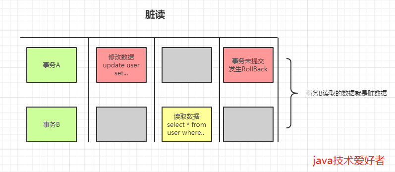 1、在事务A执行过程中,事务A对数据资源进行了修改,事务B读取了事务A修改后的数据。