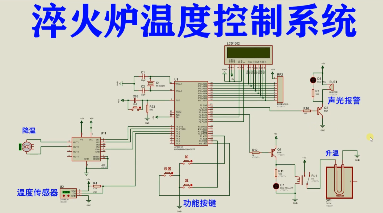 基于51单片机的淬火炉温度控制系统仿真 AT89C52是一款经典的8位单片机,是意法半导体(STMicroelectronics)公司生产的一系列单片机之一。它基于8051内核,并具有许多与其兼容的特性。AT89C52的主要特点如下:内部存储器:AT89C52具有8KB的闪存(Flash)存储器,可用于存储用户程序和数据。这些存储器的内容可以通过编程器进行编程和擦除。RAM存储器:AT89C52配备了256字节的随机存取存储器(RAM),用于暂存数据和程序的变量。