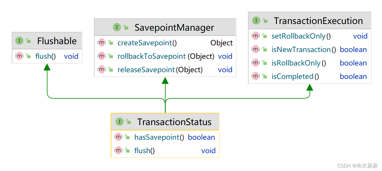 TransactionStatus 接口 定义事务状态,编程式事务使用此接口