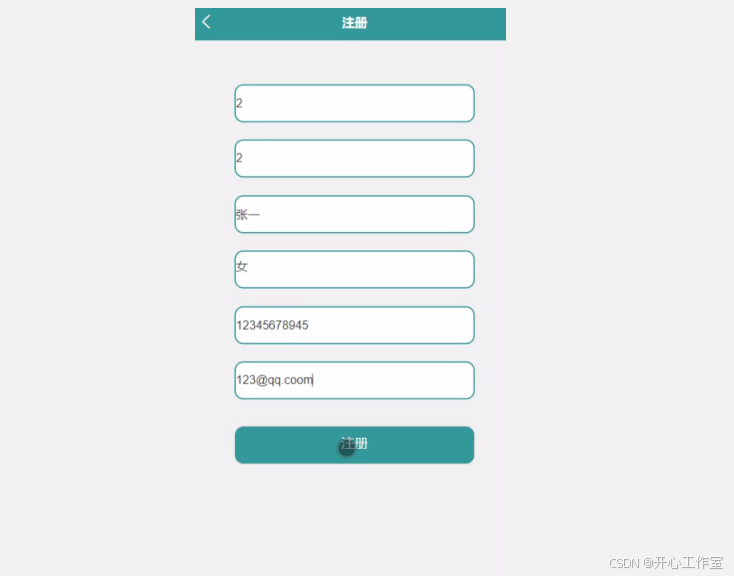 用户注册,在注册页面填写用户名、密码、姓名、性别、手机、邮箱进行注册操作,如图5-11所示。