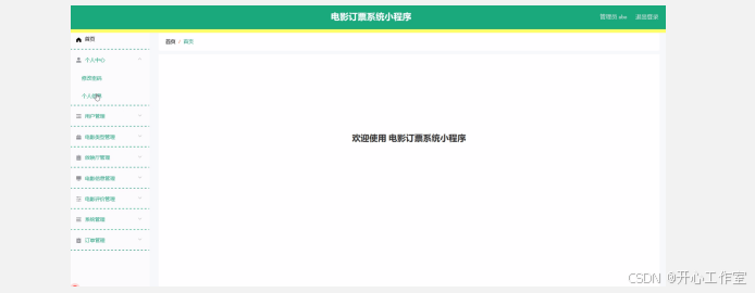 2、管理员服务端;首页、个人中心、用户管理、电影类型管理、放映厅管理、电影信息管理、电影评价管理、系统管理、订单管理等。
