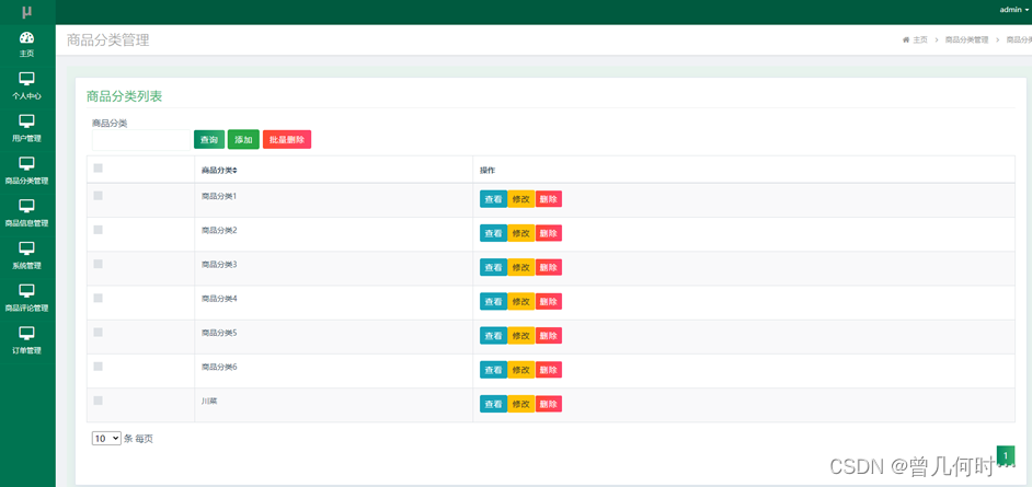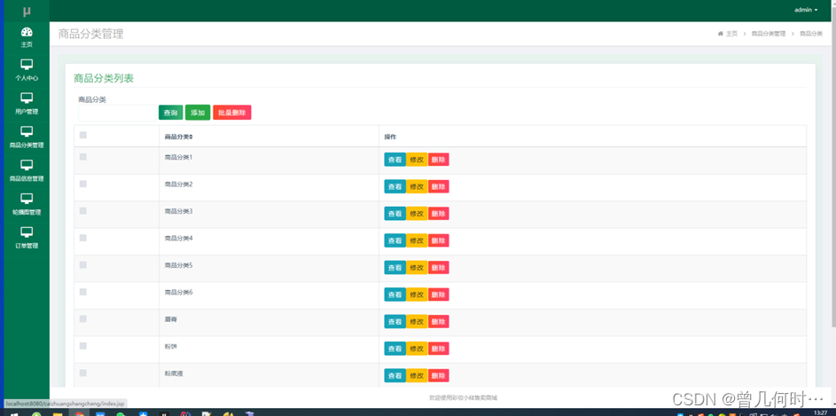 商品分类管理:通过列表可以获取商品分类等信息,进行修改或删除操作
