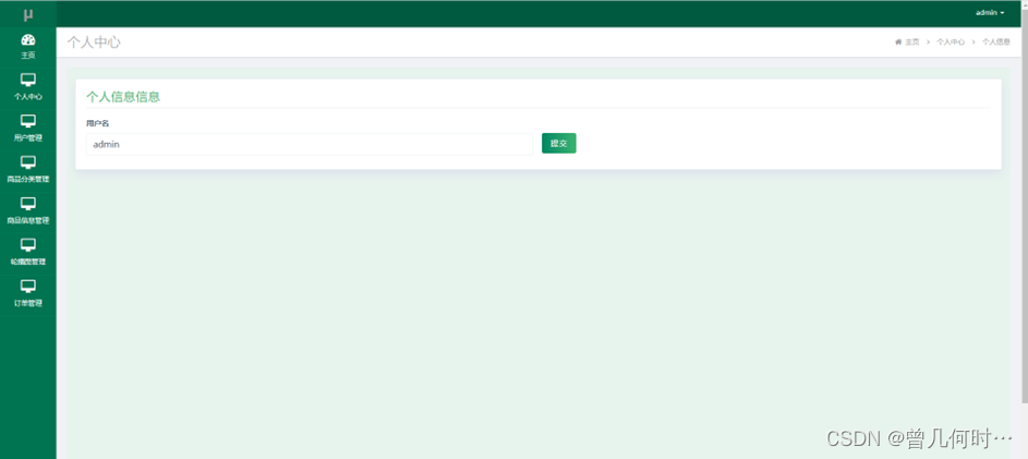 管理员通过用户名和密码填写完成后进行登录。管理员登录成功后进入到系统操作界面,可以对主页、个人中心、用户管理、商品分类管理、商品信息管理、系统管理、订单管理等功能模块进行相对应操作。