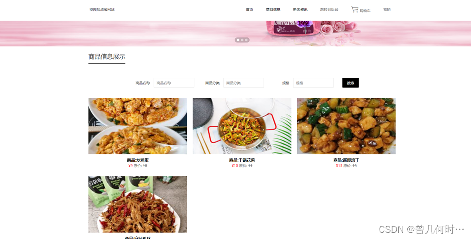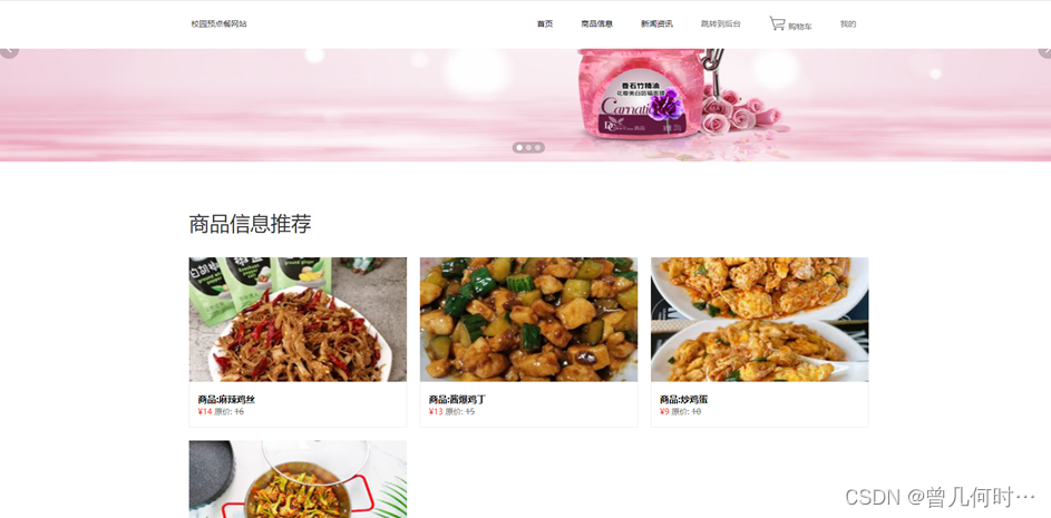 青大校园预点餐系统,在青大校园预点餐系统可以查看商品信息、我的、跳转到后台、购物车等内容
