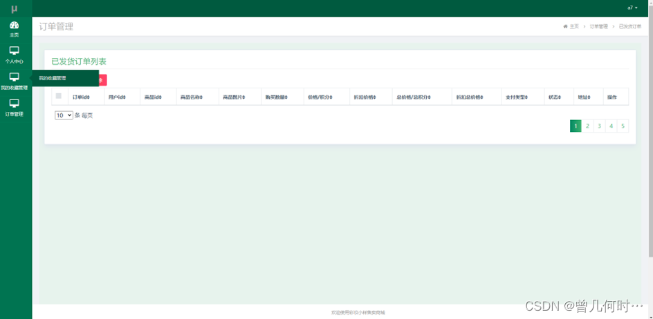 已发货订单列表:通过列表可以获取订单id、用户id、商品id、商品名称、商品图片、购买数量、价格/积分、折扣价格、总价格/总积分、折扣总价格、支付类型、状态、地址等信息,进行查看操作
