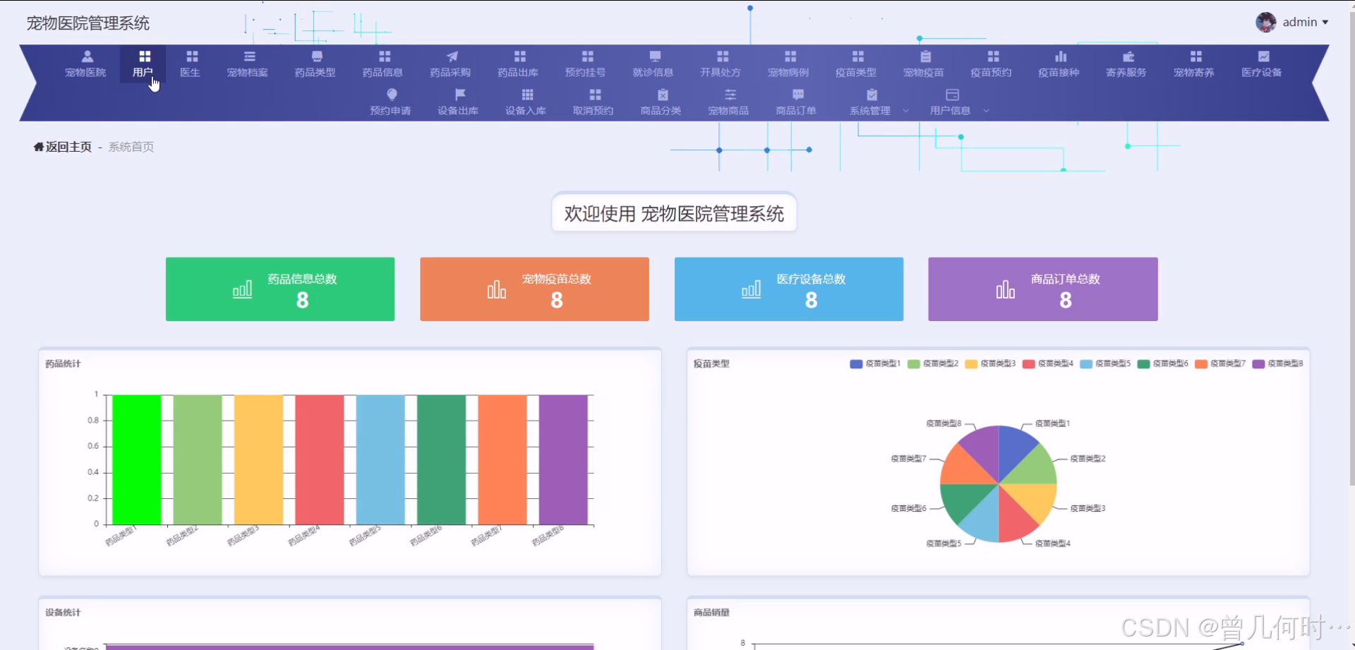 - 用户管理模块:支持用户的注册、登录、权限管理等功能。不同的用户角色具有不同的操作权限,如管理员、医生、宠物主人等,确保系统的安全性和数据的保密性。