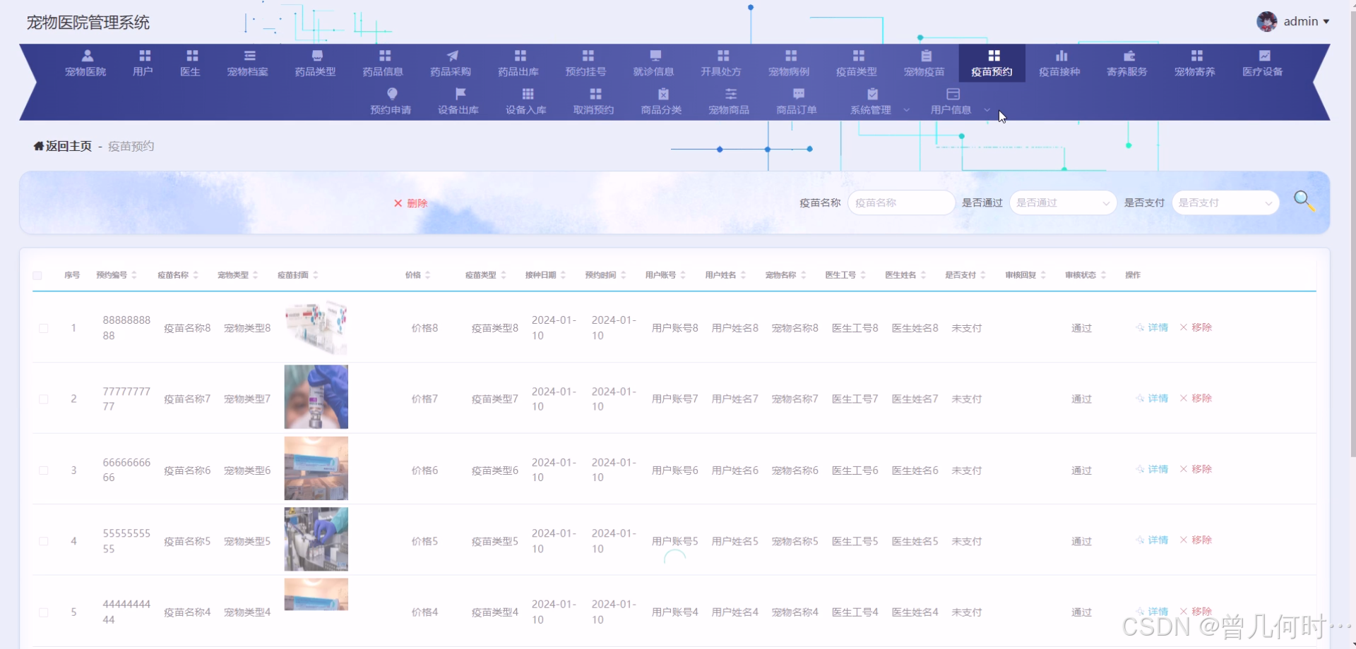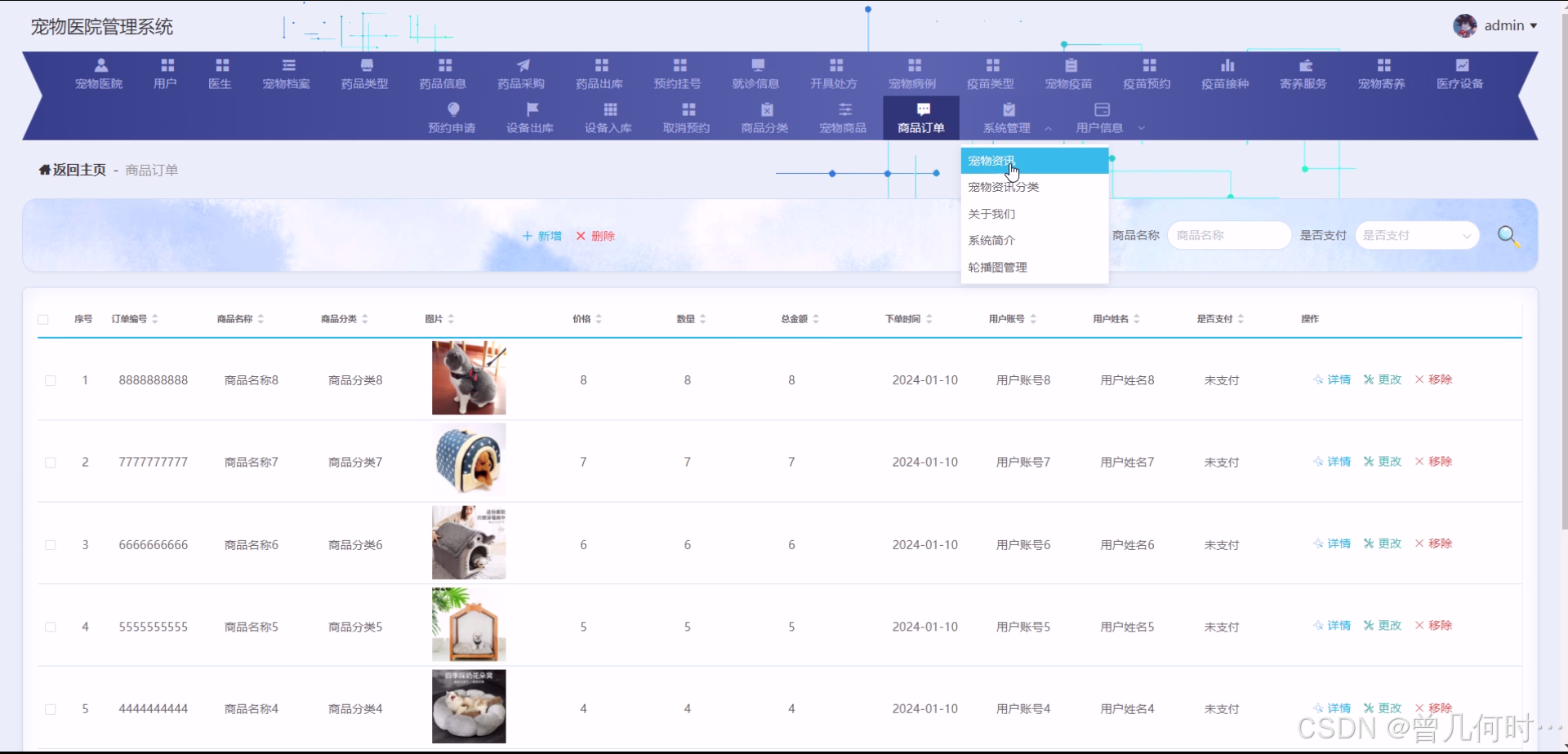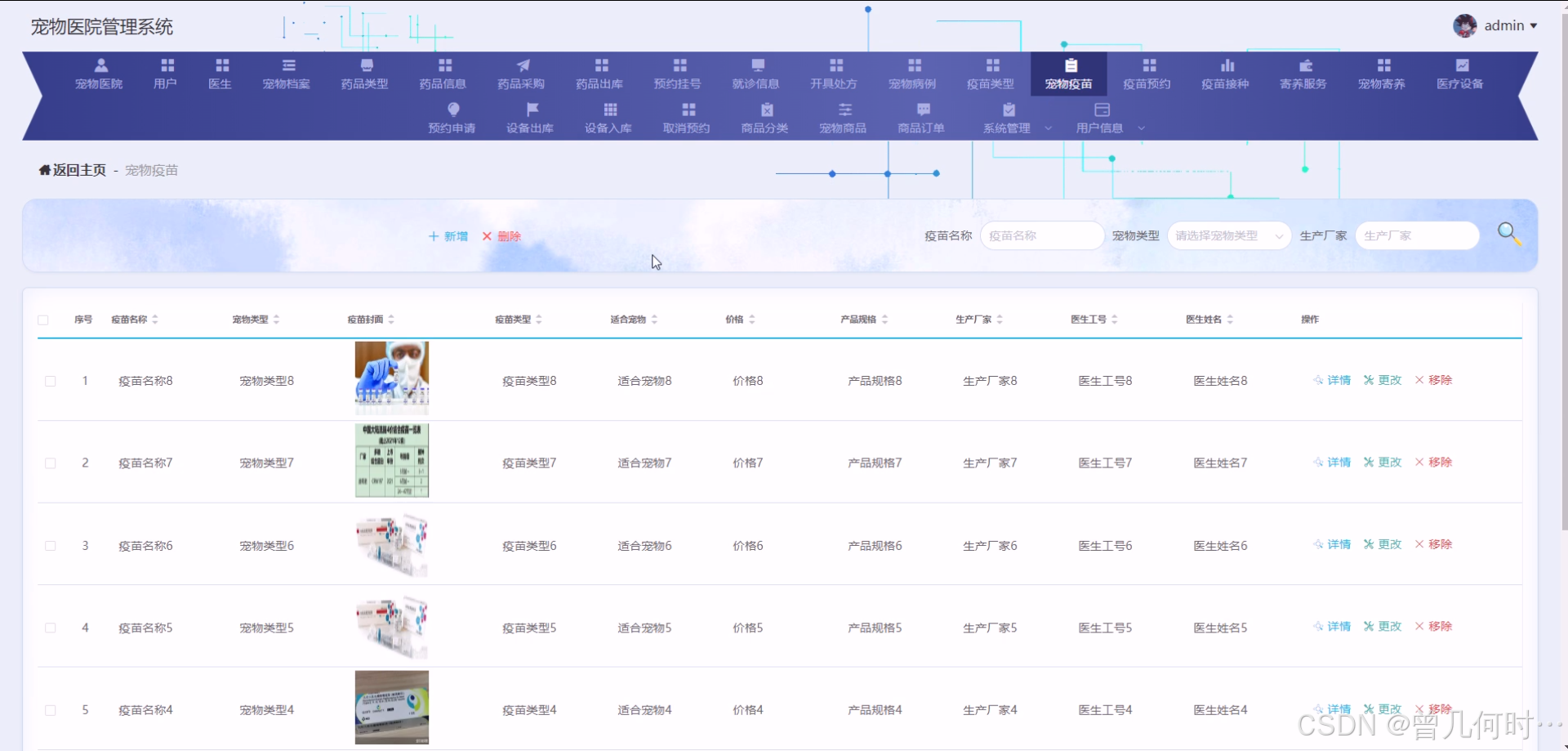 - 宠物信息管理模块:可以录入、查询、修改和删除宠物的基本信息,如宠物种类、年龄、性别、体重、病史等,方便医院对宠物进行跟踪和管理。