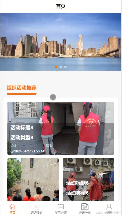 在Android端,进入系统首页可以看到首页的组织活动推荐