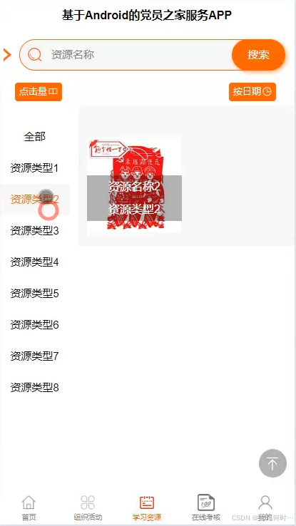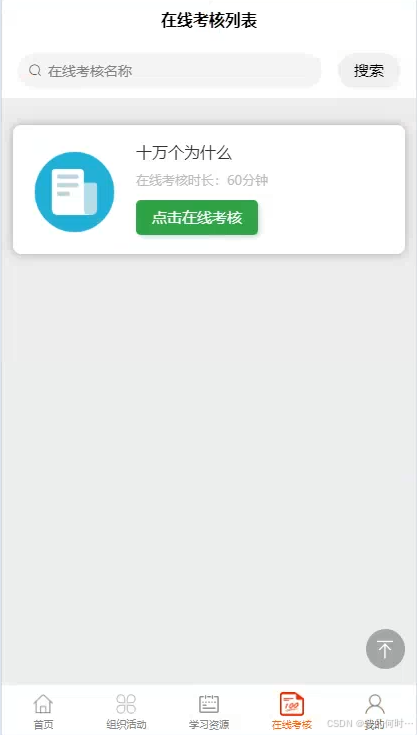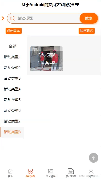组织活动页面,用户可以在这个页面进行查询相关活动并且点击进去参加活动