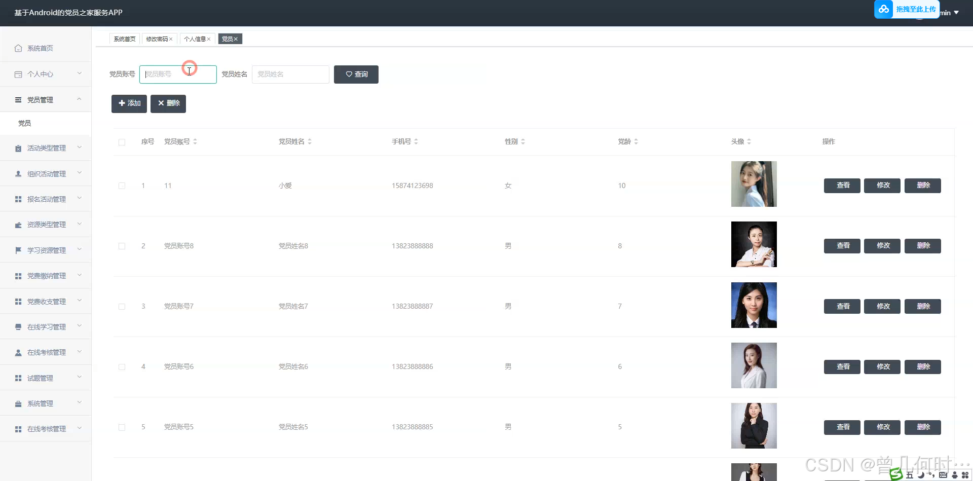 - 后台管理:党组织负责人可以通过后台管理功能管理党员信息,包括党员档案更新、组织关系转接等操作。同时,还可以进行活动管理、数据分析等,为党组织决策提供依据。