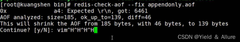我们需要修复这个aof文件 redis 给我们提供了一个工具 redis-check-aof --fix