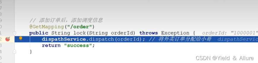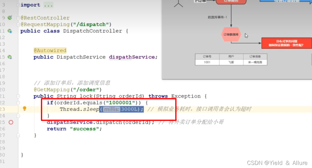 接下来去运单模块的controller层的lock()接口中,让他睡眠3秒,来达到订单模块一个错误问题