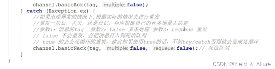 此处的channel.basicNack()方法的第三个参数为false,会直接把消息移除,不会在配置死信队列