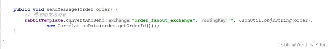 创建一个OrderMQService服其中regCallback()方法是用来判断消息是否发送到交换机(rabbitmq是消息到了交换机之后,交换机自动发送给对应的对列)