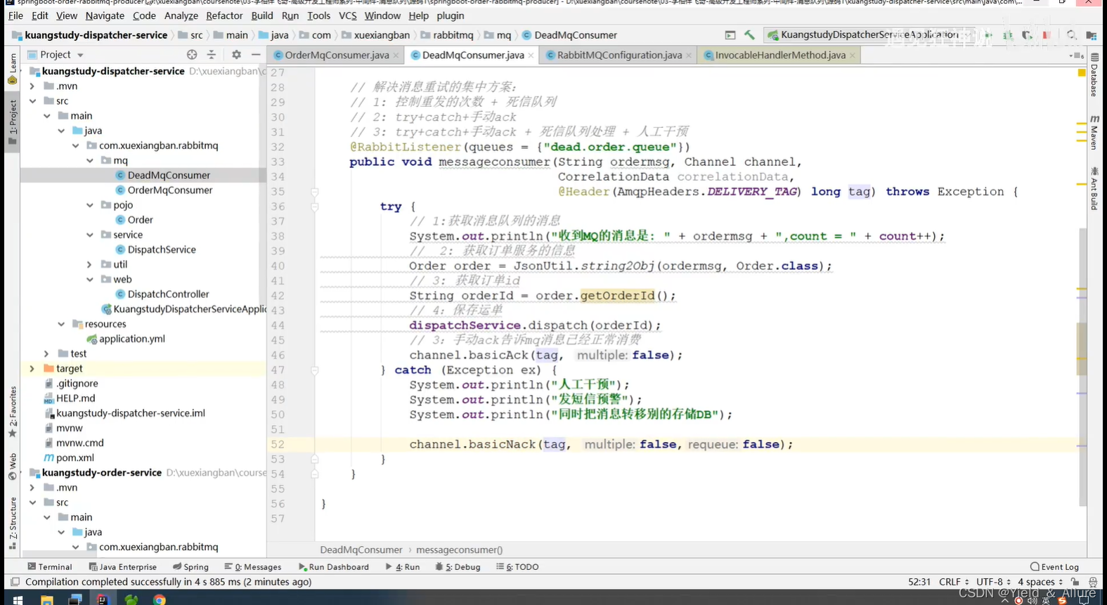 OrderMqConsumer类的修改代码如下
