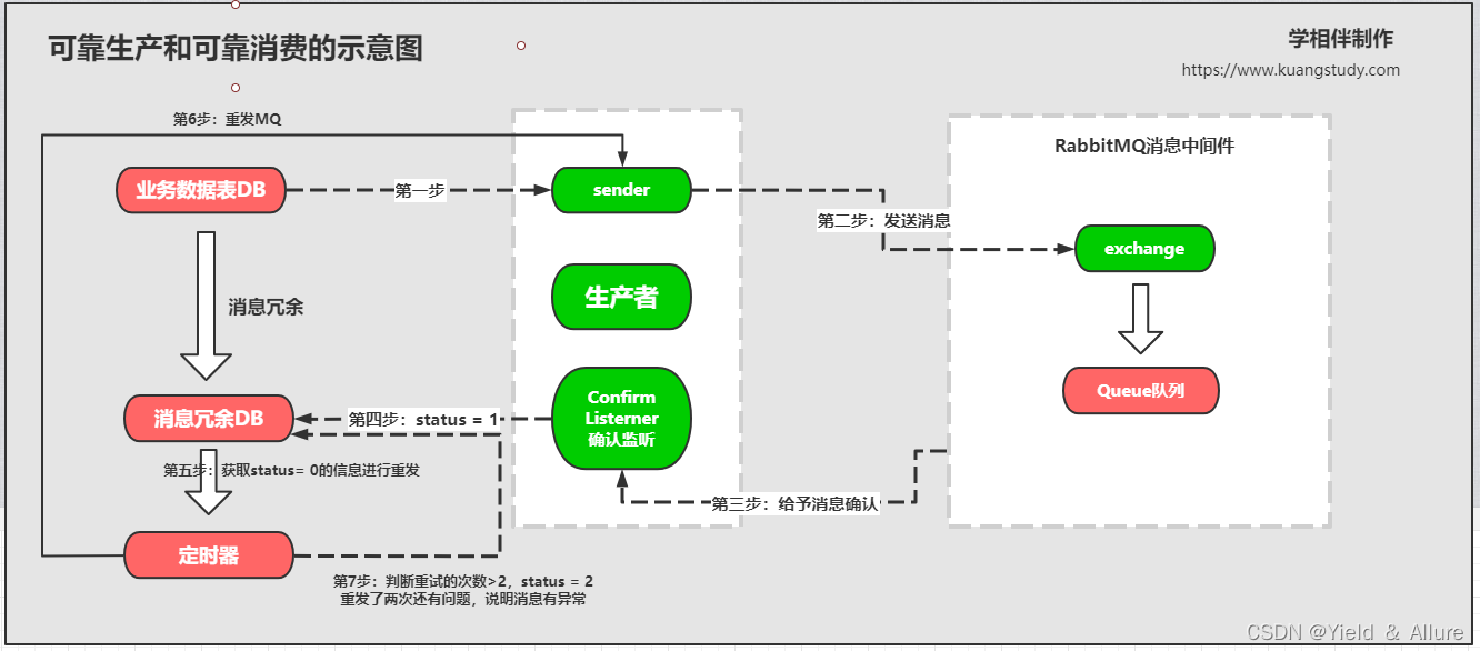 具体的视屏参考这个RabbitMQ-39、高级-分布式事务-可靠生产和推送确认 | KuangStudy | 飞哥 | 狂神说 | 学相伴_哔哩哔哩_bilibili