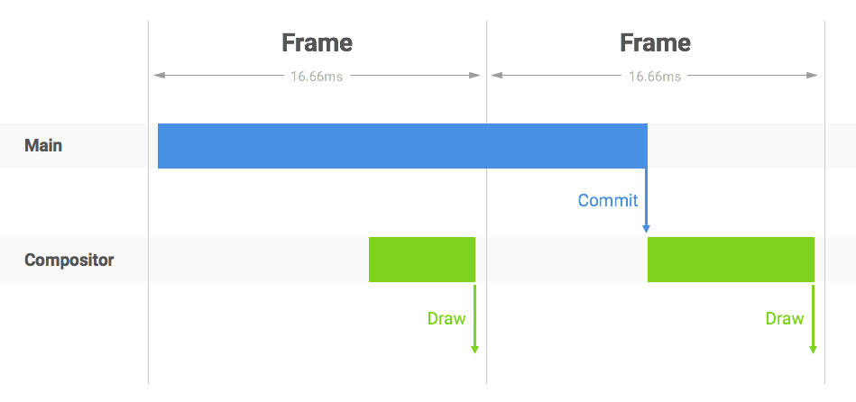 在一个标准帧渲染时间16.7ms之内,浏览器需要完成Main线程的操作,并commit给Compositor进程