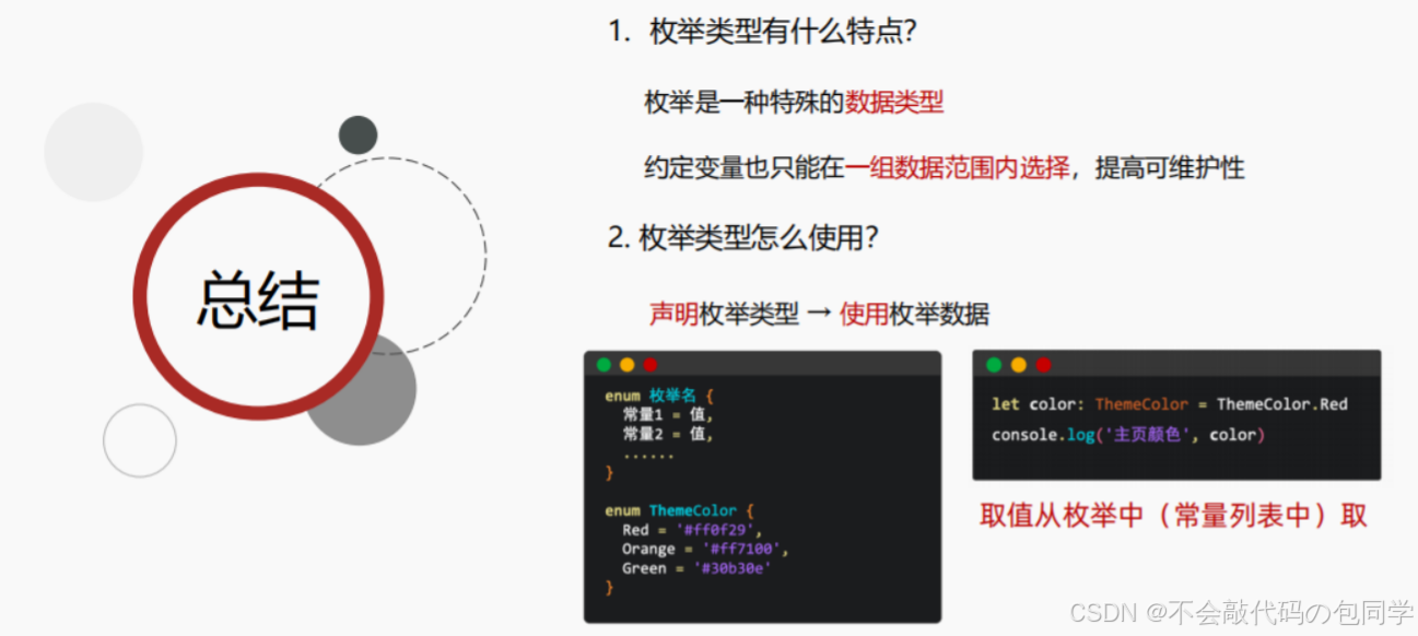 // 需求:利用枚举类型,给变量设置主色