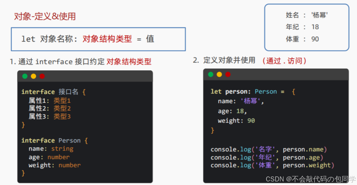 // 2.基于接口,定义对象
