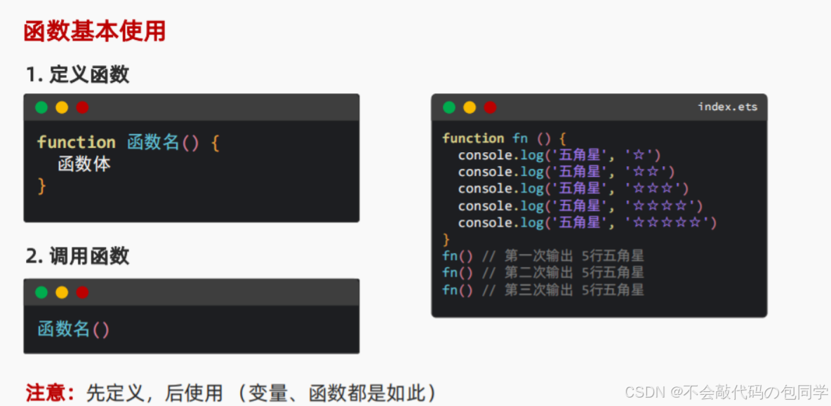// 2.函数调用(使用函数)