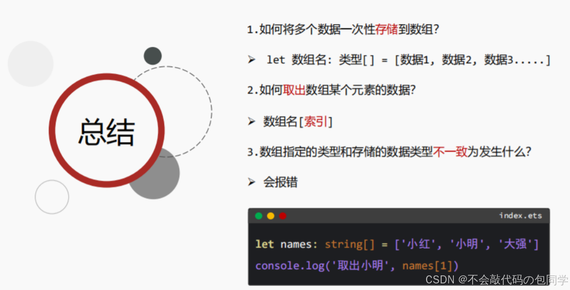 // 取数据:数组名[索引]
