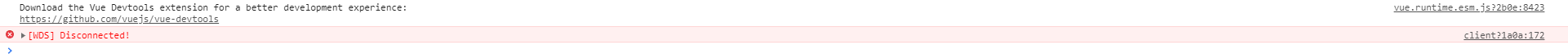 解决VUE [WDS] DISCONNECTED 错误 在运行项目的时候会出现一下情况解决方式:在vue.config.js文件中找到devServer,添加Headers:{'Access-Control-Allow-Origin':'*'},hotOnly:false,disableHostCheck:true出现原因:win10默认设置的ipv6的优先级高于ipv4,所以把localhost解析到ipv6去了(这里主要因为项目使用了代理服务软件解析问题)参考链接:https...