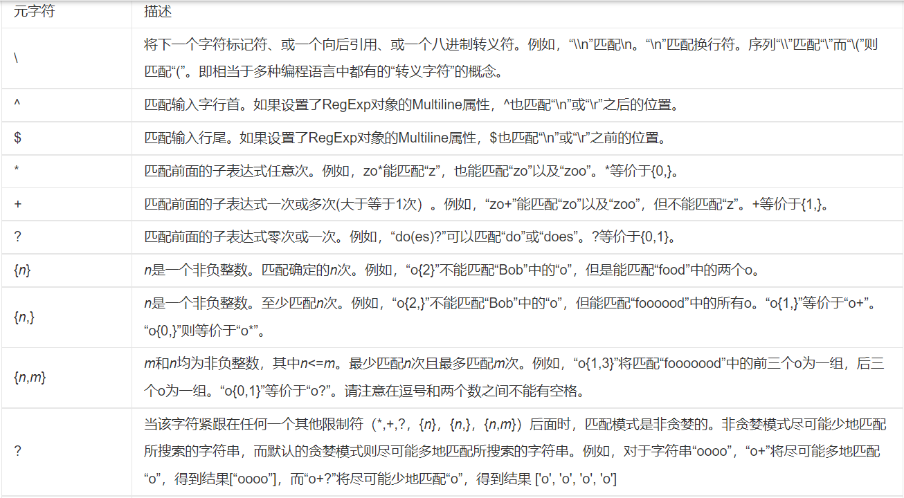 正则表达式简单题(附带答案) 1、//匹配三位数的整数String content = "asdasl6s7AD_0)89jdklas892)d";String regStr01 = "\\d\\d\\d";String regStr02 = "\\d{3}";2、//匹配(1~n)个字母a-z 贪婪匹配原则String content = "asdasl6s7AD_0)89jdkADFlas892)d";String regStr01 = "[a-z]+";3、匹配abc字符串String content =