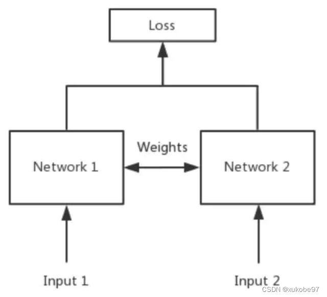 神经网络的“连体”是通过共享权值来实现的,如图所示。