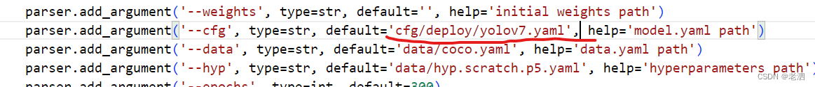 cfg就是yolov7.yaml这种文件,我们下载的官方代码,这个文件的路径在