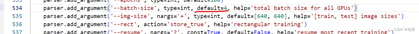 举个例子,假如我设置为4,我在运行代码的时候会显示显存占用的大小,比如是1.5G大小,那么我的batch-size就可以在当前设备情况下开到8,这样就可以最大的发挥显卡的使用率,跑到速度快一些。