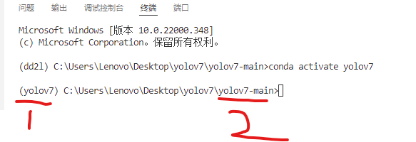我的这个项目配置的环境名字叫yolov7,所以我的指令是