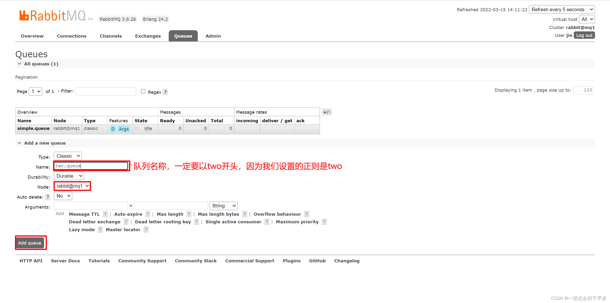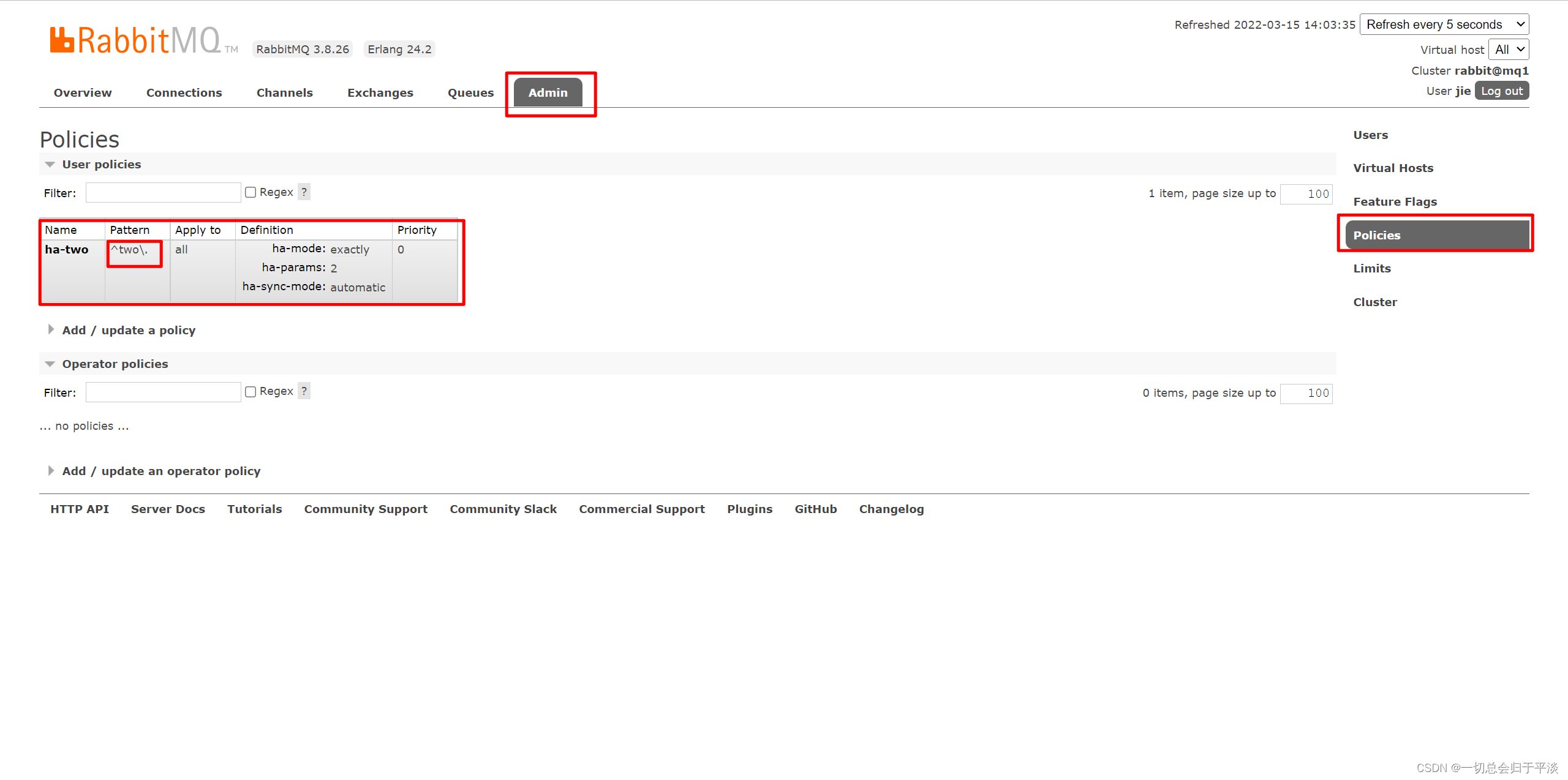 "^two\.":匹配队列的正则表达式,符合命名规则的队列才生效,这里是任何以two.开头的队列名称