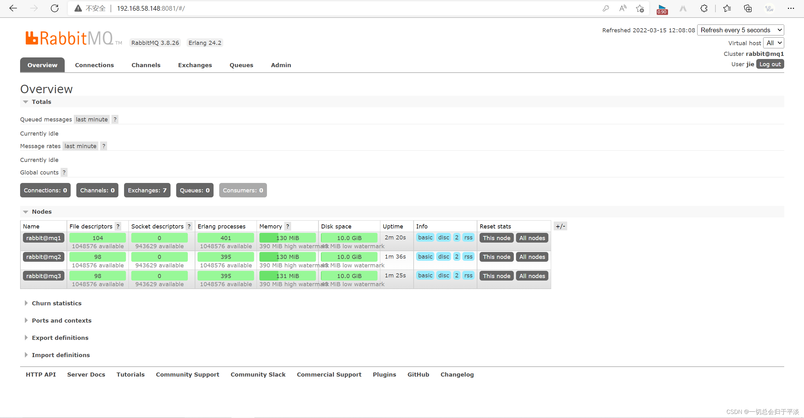 RabbitMQ底层依赖于Erlang,而Erlang虚拟机就是一个面向分布式的语言,默认就支持集群模式。集群模式中的每个RabbitMQ 节点使用 cookie 来确定它们是否被允许相互通信。