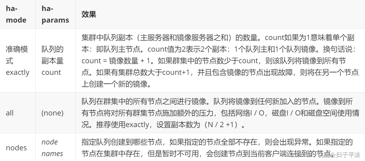 "ha-mode":"exactly":策略模式,此处是exactly模式,指定副本数量