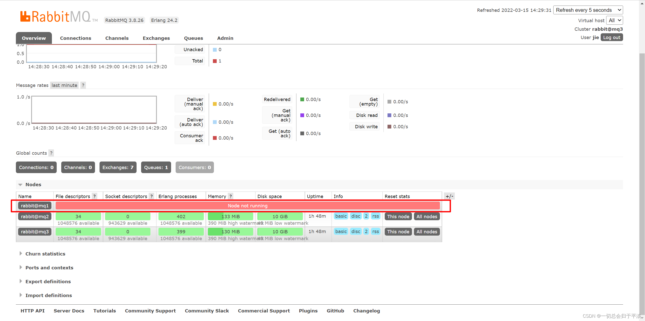 在刚刚的案例中,一旦创建队列的主机宕机,队列就会不可用。不具备高可用能力。如果要解决这个问题,必须使用官方提供的镜像集群方案。